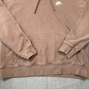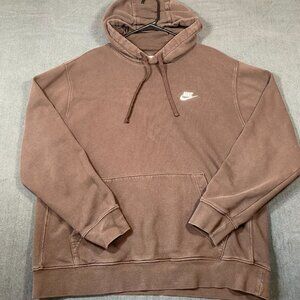 Nike Brown Pullover Hoodie With Embroidered Logo & Kangaroo Pocket Mens XL