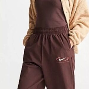 Cute oversized chocolate brown swishy pants with elastic at waist. Nike sportswear logo