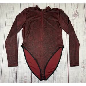 Nike Burgundy Snake Print Body Suit Woman's Size XL Long Sleeve Comfort Tight