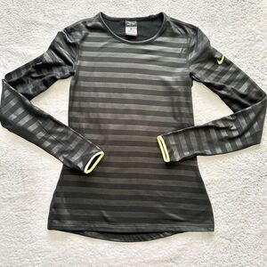 EMBOSSED CREW :: Get connected with your next cold weather go-to top when you check out the Women's Nike® Pro Hyperwarm Embossed Crew. Enjoy the cozy comfort of this cool weather running top's super soft, brushed jersey fabric. You'll love the form-flattering fit plus the delicate design touch-ups that'll give your workout style flare and femininity. Enjoy the comfort-minded updates, like the underarm gussets for a better fit and feel, and thumbholes for added warmth. Layer it as you like, or wear alone!