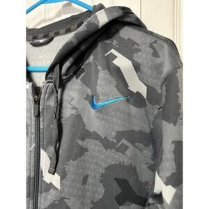 Nike Camo Hoodie Mens Gray Court Therma Fit Training Hoodie Blue Swoosh Logo Lg