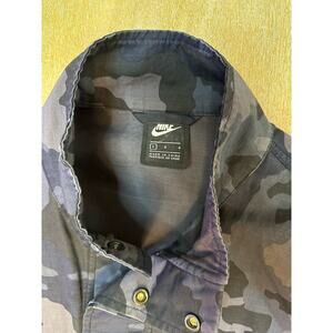 This ‘dark obsidian’ camo jacket is loosely based on the rugged appearance of Nike's M-65 style. Crafted with modern updates, this military-spec inspired piece is kitted out with four ample-sized flap pockets to the face, featuring an army-like branded ‘NSW’ patch to its streamlined cotton base. March with pride through the streetwear scene in this unique design, complete with a secure storm flap button closure.