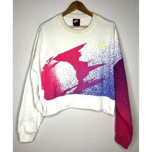 Nike Challenge Court Crop Crewneck Sweatshirt Women’s Size Medium White Neon