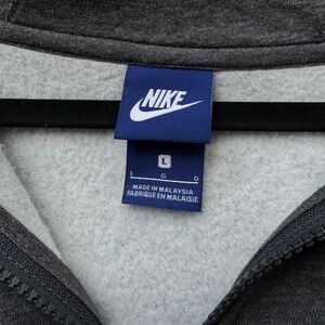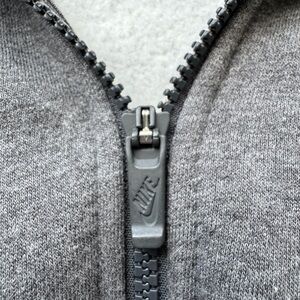 Stylish charcoal full-zip sweatshirt. Features Nike logo on zipper. Perfect for casual wear.