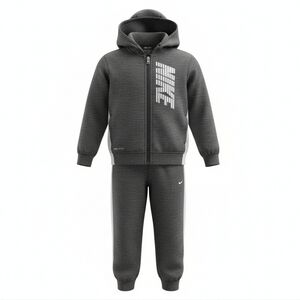 Stylish charcoal zip-up hoodie and sweatpants set by Nike. Features a bold logo design.his 2-piece set includes a charcoal gray full zip-up jacket and matching sweatpants. Made with soft, cozy fabric—perfect for playtime, school, or casual outings. Features classic Nike style with a clean, versatile look that pairs easily with any outfit.