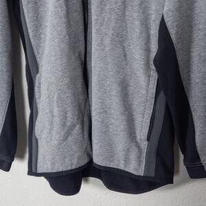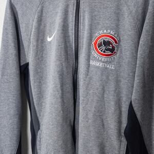 Nike hoodie with basketball emblem. Charcoal and black design. Perfect for active and casual wear.