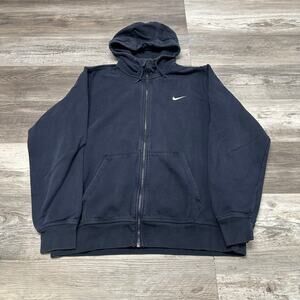 Nike Classic Fleece Blue White Mens XL Full Zip Mini Swoosh Sweatshirt Hoodie