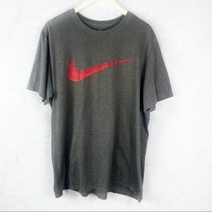 Nike Classic Logo Tee Shirt. Round Neckline. Short Sleeves. Graphic Swoosh on Front. Minor Fading / Discoloring. Cute & Comfy. No Stains or Rips.