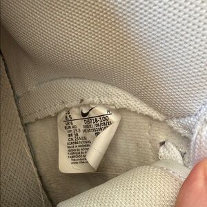 Crisp white high-top sneakers by Nike. Iconic design with lace-up closure.