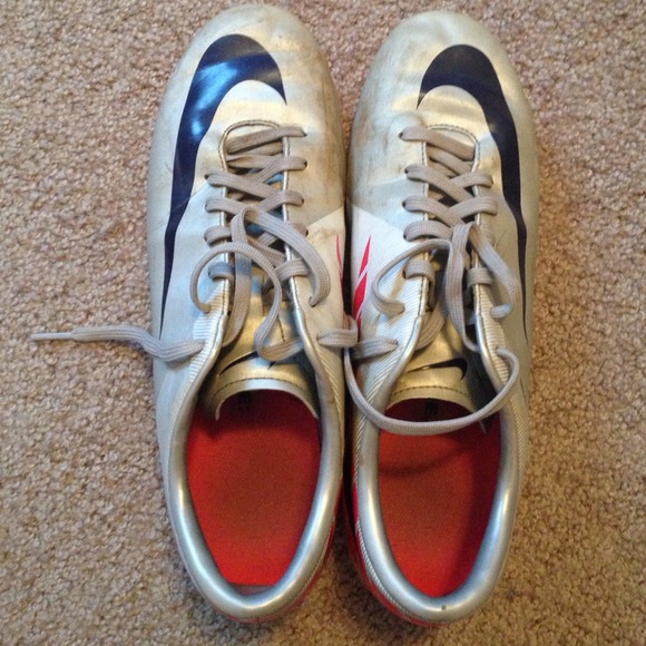 Mercurial Nike Cleats!!!!! 💯 Grey shoe with Navy Blue Nike sign, and pink design. Great condition!