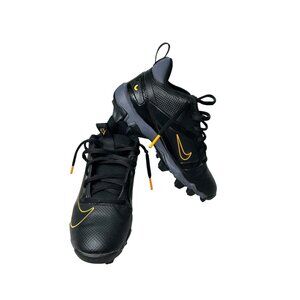 Youth size 2Y pair of Nike cleats in Black with gray and yellow accents, yellow swoosh. In excellent like-new condition.
