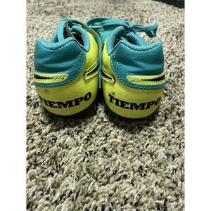 Elevate your game with these turquoise Nike cleats designed for soccer enthusiasts. The shoes feature a sleek design that offers comfort and support on the field. With a US size of 3.5, these cleats are perfect for girls who want to make a statement while playing their favorite sport.