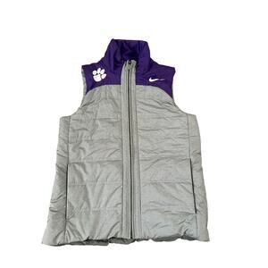 Nike Clemson Tigers Purple Gray Vest Mens Medium Puffer Full Zip Vest