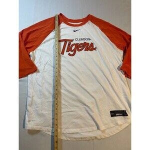 Nike Clemson Tigers Shirt Mens Size XL White Red Colorblock Dri Fit Baseball
