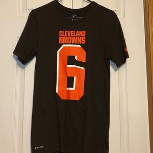 New without tags Cleveland Browns Baker Mayfield jersey shirt. Nike Dri-Fit. Brown and orange. Size Small.