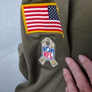 The Nike Cleveland Browns NFL On Field Camo Men's Size XL Hoodie is a high-quality, officially licensed football apparel designed for fans of the Cleveland Browns. Made with Therma Fit technology, this hoodie provides warmth and comfort while showing support for your favorite team in style. The brown color and camo design add a unique touch to the classic hoodie, making it a must-have for any football enthusiast. Represent the Cleveland Browns with this officially licensed Nike hoodie.