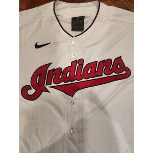 Show your support for the Cleveland Indians with this authentic Nike field jersey. Made with high-quality materials, this jersey is perfect for any fan of the Major League Baseball team. The white jersey features the team's logo and is officially licensed by the league.