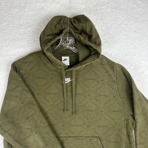 Nike Club Center Swoosh Hoodie All Over Print Logo Olive Green Large DM7930-326