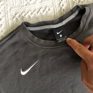 Keywords: Nike crewneck, club fleece, swoosh logo, gray sweatshirt, minimalist streetwear, athleisure, men’s small, neutral pullover, casual sportswear, embroidered logo, essential layer, Y2K basics