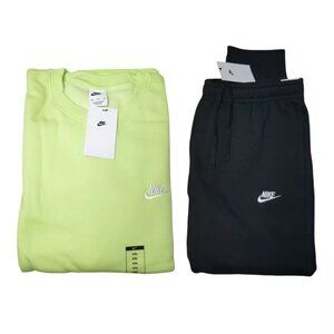 Nike Club Fleece Men's Size 2XL Sweatsuit Black Neon Volt Warm Up Hoodie Pants