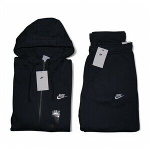 Nike Club Fleece Men's Sweatsuit 2 PC Tracksuit Matching Black Hoodie Pants NWT
