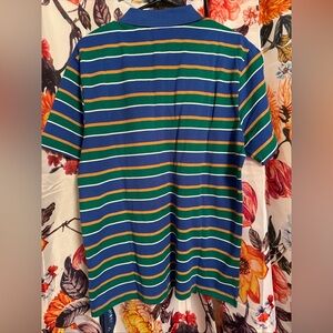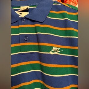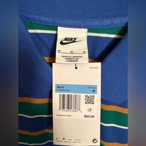 The Nike Club Men's Striped Polo in Game Royal/White is a stylish and versatile piece perfect for various occasions such as travel, activewear, casual outings, parties, and workwear. Made from 100% cotton, this shirt features a collared neckline, short sleeves, and a pullover closure for easy wear. The breathable fabric and relaxed fit make it ideal for the summer, fall, and spring seasons. With its accented button detail, embroidered logo, and slit features, this polo combines comfort and style for the fashion-conscious man.