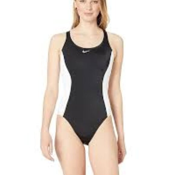 Nike Color Surge Powerback Racer Black One Piece Swimsuit Size XL Swimwear