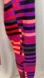 Stand out in style with these bold and vibrant Nike leggings featuring a striking geometric stripe pattern in shades of red, pink, purple, and black.