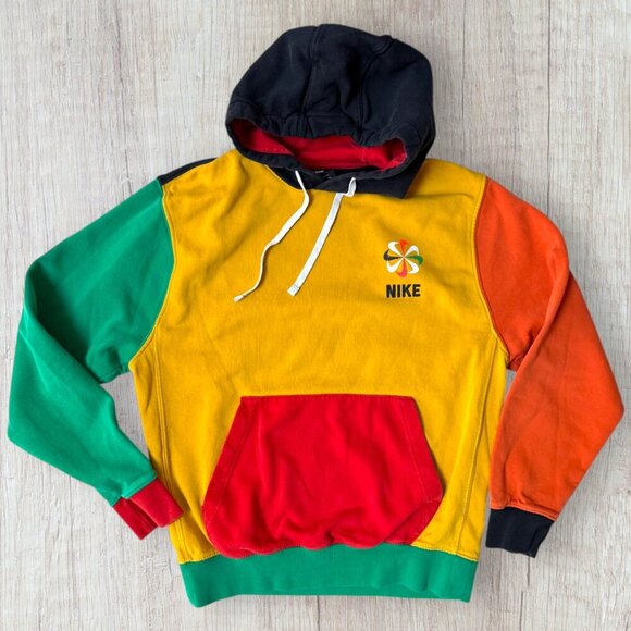 Nike hoodie, vintage Nike, colorblock hoodie, retro streetwear, Nike pullover, small hoodie, bold graphic hoodie, multicolor sweatshirt, sportswear hoodie