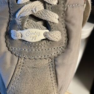 The Nike Cortez '72 Vintage Textile Shoes for women in size 8 feature a classic gray suede toe with a pink logo, giving them a stylish and vintage look. These sneakers are part of Nike's iconic Cortez line and are perfect for athletic activities or everyday wear. Made with textile material, these shoes combine quality with a retro design that is sure to make a statement. The combination of gray and pink colors adds a trendy touch to any outfit. Still a bit of life left.
