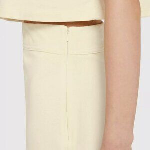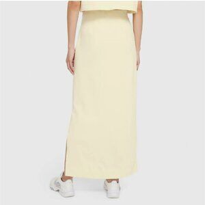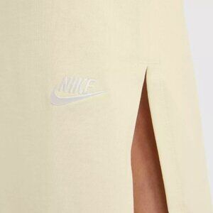Super cozy full-length skirt features a side slit, elasticated waistband and the signature Nike Swoosh logo in bright white embroidery. The cream-colored mid-weight jersey fabric is super smooth and soft. Size: Small.