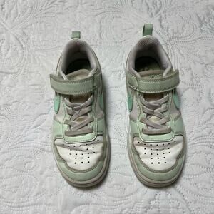 Nike Court Borough low recraft stretch lace sneakers. Low top top tennis shoes in white and barely green / mint foam. Play condition for overall wear. Size 12 youth.