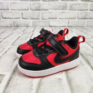 Nike Court Borough Low Recraft Youth Sz 6 C Black Red Sneaker Hook-N-Loop Strap DV5458-600