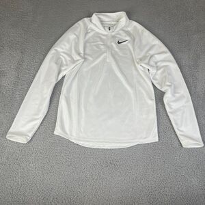 Nike Court Challenger Jacket Men XS White 1/4 Zip Knit Long Sleeve Sweater Shiny