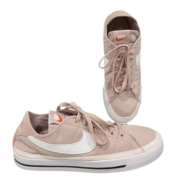 Nike Court Legacy Canvas Shoes Women's size 9 Pink with White Swoosh Oxford Athletic Sneakers Low Top Casual Preppy