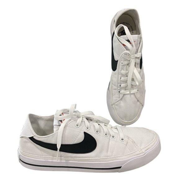 Nike Court Legacy Canvas Shoes Women's size 9 White with Black Swoosh Athletic Sneakers Low Top Casual Preppy School