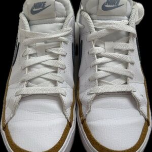 Only worn a handful of times, very light wear & tear. Women’s size 7, comfortable true to size fit. The swoosh is closer to a carolina blue coloring, with dark tan stitching.