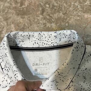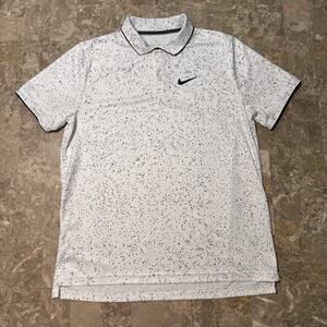 Nike Court Polo Shirt Mens Large White Speckled Print Tennis Heritage AT4148