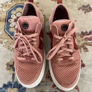 Vibrant Nike sneakers with a rose and crimson design. Ideal for everyday style.