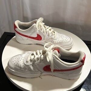 Nike Court Vision Low - DM7588-100 - White/Red/Black Swoosh Print.
