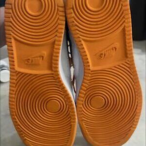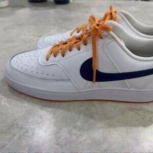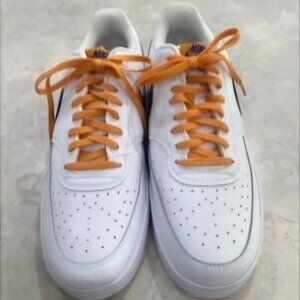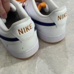 Like New!! These Nike Court Vision Lows are white with electro purple swoosh, and light curry yellow, come with gold yelliw laces. Excellent condition! This us a great, stylish, sporty shoe for everyone!!