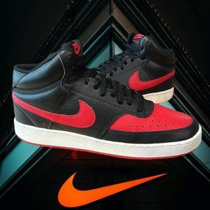 Very Nice Nike Court Vision Mid #DM8682-001 Black Red University Men's Basketball Shoes