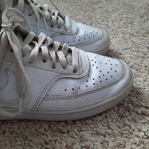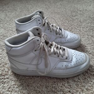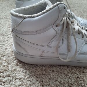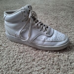 Nike Court Vision Mid Next Nation Shoes white athletic shoes CD5466-100 size 7. Retro style white leather mid-top athletic basketball or streetwear shoes. Some creases near toe area and light outersole
