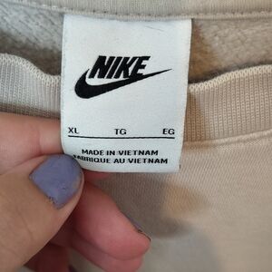 Comfortable Nike sweatshirt. Features white logo and green accents. Perfect for casual wear.