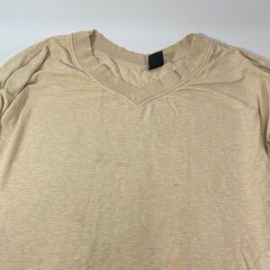 Soft cream sweater with V-neck. Features Nike Dri-FIT technology. See pic for small blemish.