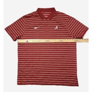 Elevate your game day ensemble with the Nike Crimson Alabama Crimson Tide Icon Victory Coaches Sideline Polo Shirt. Designed for the ultimate fan, this polished polo is sized XL for a comfortable fit that doesn't sacrifice style. The bold red hue is accented by classic white stripes, reflecting your team's spirit with every movement.