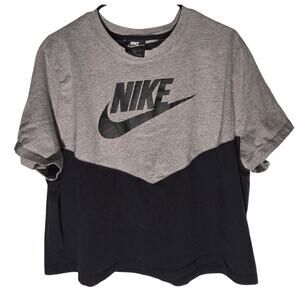 Nike Crop Top T-Shirts Grey and Black - Women's 2XL