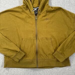 Nike Cropped Full Zip Hoodie Jacket Women's Small Olive Green Pocket Active