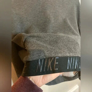Nike Cropped Gray Crewneck Size Small. Super cute cropped crewneck! Has an elastic band with the Nike branding on it. Good pre loved condition, some wear/ pilling and loose elastics. Would look adorable with any athletic wear outfit!
