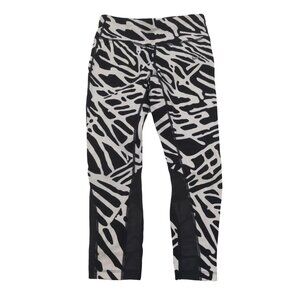 Nike Cropped Leggings Women XS Zebra Print Mesh Panel Black White Athletic